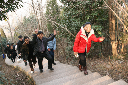 北風(fēng)帶來了入九的寒冬,卻也吹散了連日來的霧霾,換來了難得的艷陽天。參賽職工飽滿的熱情更是在登山的石坡上灑下了一股暖流。他們有的嚴肅認真,雙眼緊盯腳下的石板;有的不時地輕松調(diào)侃,不過腳步卻并沒有放慢。從山頂望去,男選手們爭先恐后,步伐矯健,競爭激烈。女選手們?nèi)齼沙尚?,腳步輕盈,有說有笑??芍^紅襖綠葉相映成趣,歡聲笑語輕松跨年,這也是舜龍公司積極健康企業(yè)文化的生動寫照。